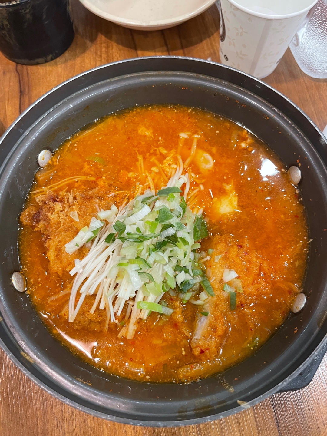 김치까스나베는 내 입맛에는 썩 와닿지 않았다. 바삭한 돈까스만 먹다가 국물에 잠겨있는 돈까스를 먹으니
