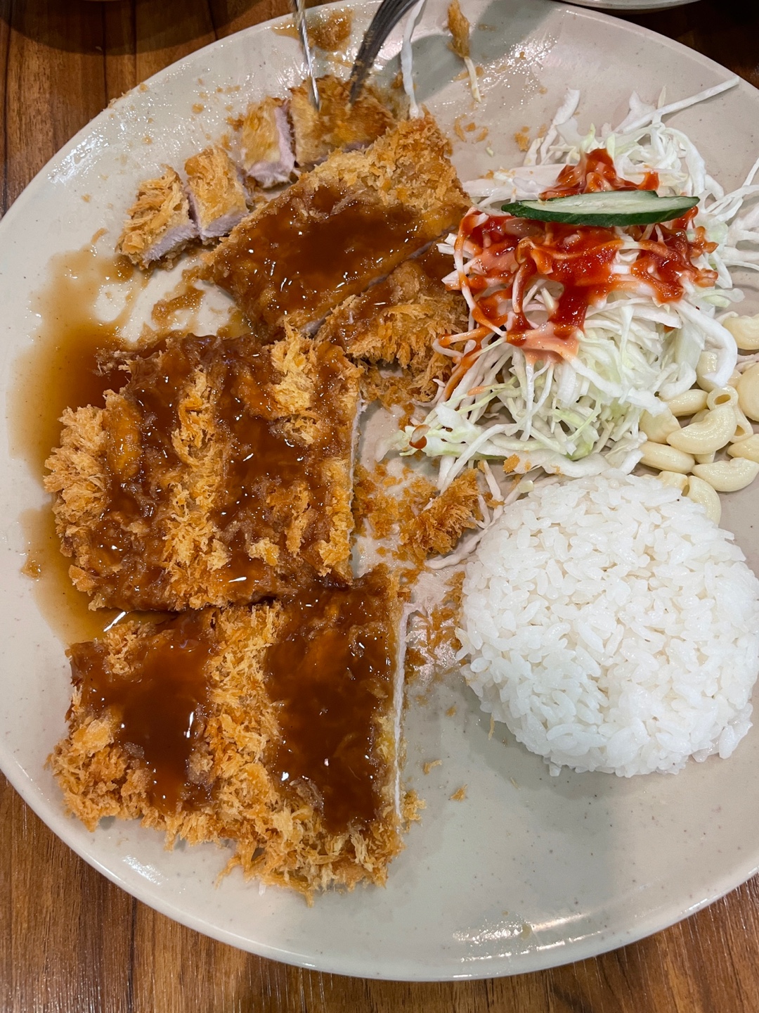 돈까스는 사진 찍는 걸 깜빡하고 배고픔에 이성을 잃고 먹어버렸다.